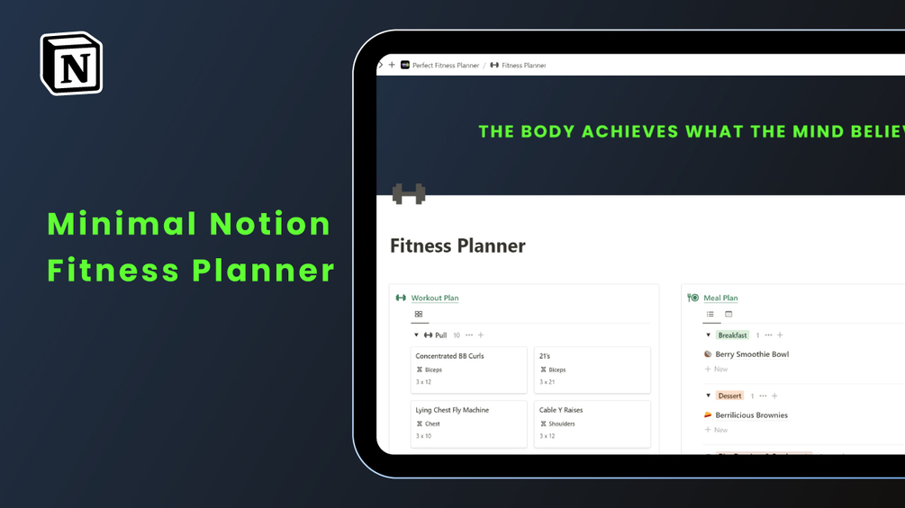 Simplify your fitness journey with the Minimal Notion Fitness Planner – your key to staying fit with absolute ease. This free template offers a seamless approach to health and wellness, featuring a workout planner, a meal planner, and a calendar to effortlessly manage your routine.