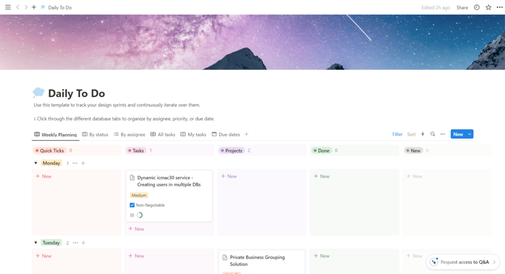 Step into a week of unparalleled productivity with the Productivity Weekly Planner, your ultimate companion for organized task management in Notion. Don't just manage your to-dosโmaster them with a template that simplifies prioritization, assigns tasks seamlessly, and provides a user-friendly interface for an enhanced workflow.